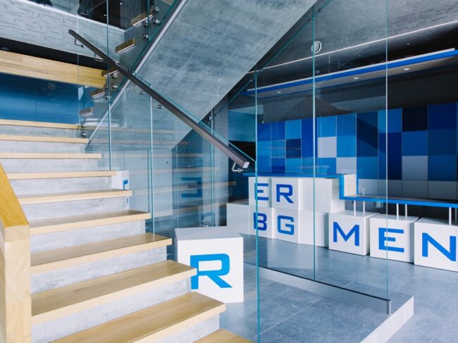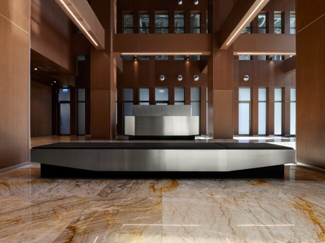 Art neon Skawina Biuro, HPL, Mat. naturalne, Przestrzeń publiczna, Recepcja, Ściana, Szafa, Tapicerka